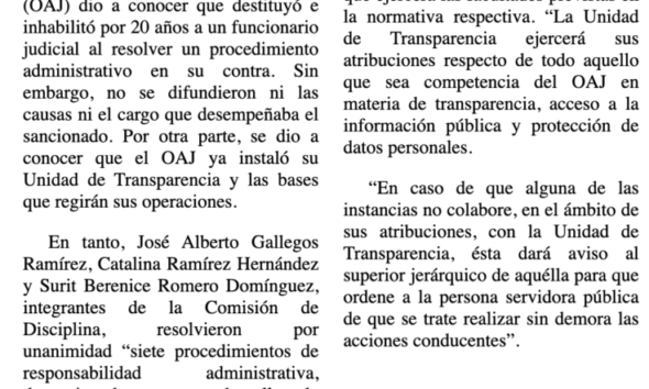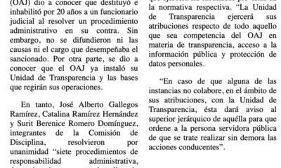 La Comisión de Disciplina y Substanciación de Responsabilidades del Órgano de Administración Judicial (OAJ) informó que aplicó una sanción de...