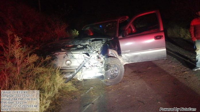 Los uniformados hallaron una camioneta Chevrolet Silverado, gris, modelo 2002, con placas de Aguascalientes, que había dado varias vueltas fuera de la cinta asfáltica y quedó detenida sobre sus cuatro llantas. El único ocupante, identificado como Alejandro N., presentaba múltiples golpes, aunque su estado no revestía gravedad inmediata.
